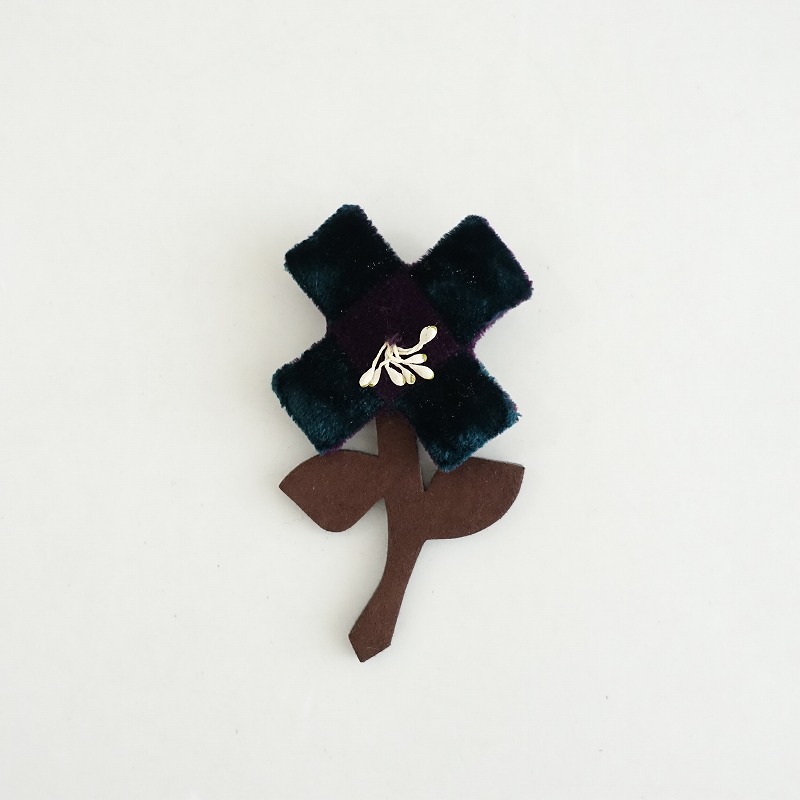 カラーなど:mina perhonenのwinter jelly フラワーブローチです。カラーはネイビー・パープル・ブラウンなどで、ベロアのような生地のお花モチーフのブローチです。定価(メーカー希望小売価格)13,650円の商品です。