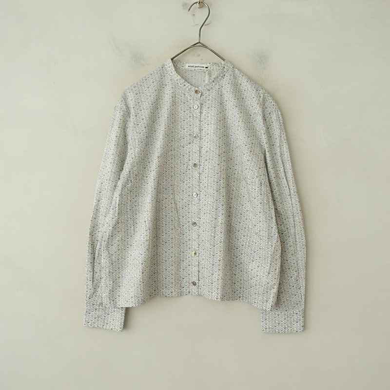 【美品/定価3.6万】ミナペルホネン mina perhonen forest wave コットンプリントバンドカラーシャツ 36 (33-2510-691)【72K52】
