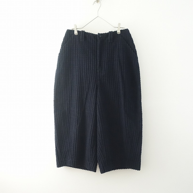 カラーなど:mina perhonenのmoss seed コーデュロイパンツです。カラーはダークネイビーで、凹凸のあるコーデュロイ素材です。ワイドデザインで、ボタン&ジッパーで着脱できます。前腰左右&ヒップ左右にポケットがあり、裏地付きです。定価(メーカー希望小売価格)55,000円の商品です。