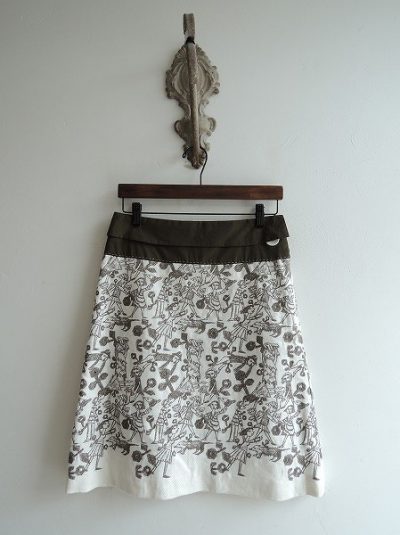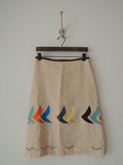 ミナペルホネン mina perhonen bird リネン刺繍スカート size38 (030314-10)
