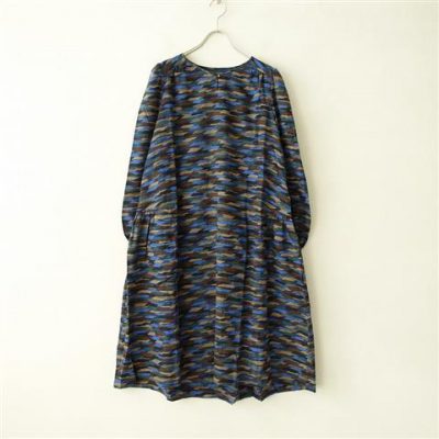 【美品】 ミナペルホネン mina perhonen autumn breezeサイドギャザードレス 38(2-2101-406)【70B12】