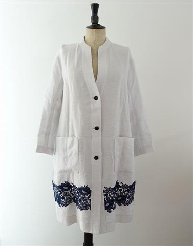 【美品】2020/SS/ ミナペルホネン mina perhonen smile flowerリネンコットンエンブロイダリーコート 38(jk2-2007-94)【71G02】