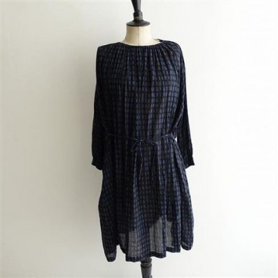 ミナペルホネン mina perhonen sora checkコットン総柄ワンピース 38(27-2102-18)【42B12】
