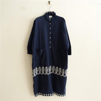 ミナペルホネンランドリー mina perhonen laundry ribbon コットンシルク刺繍シャツドレスワンピース 38(33-2009-652)