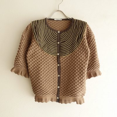 ミナペルホネン mina perhonen port of lightシルクフリルヨーク立体ニットカーディガン 36(2-2010-297)【72J02】