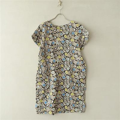 ミナペルホネンランドリー mina perhonen laundry Hanna リネンプリントドレスワンピース 38(33-2008-32)【81H02】