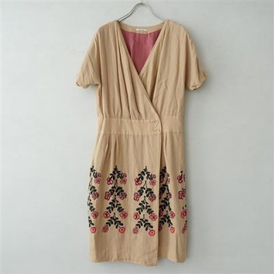 2020/SS/ ミナペルホネン mina perhonen chouchoリネンサイドギャザーエンブロイダリードレス 36(2-2007-307)【03G02】