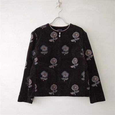 ミナペルホネン mina perhonen chum花柄刺繍ベルベットジャケット 38(jk2-2004-340)【62D02】