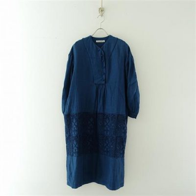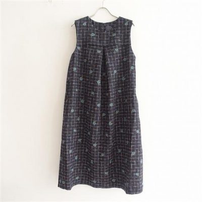 ミナペルホネン mina perhonen forest tile リネン刺繍ワンピース 36(33-2004-589)【40E02】