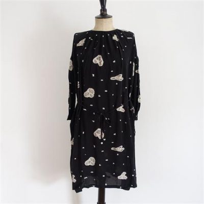 ミナペルホネン mina perhonen swingシルクプリントスモックドレス 36(2-2004-123)【91D02】