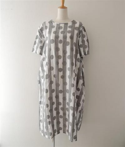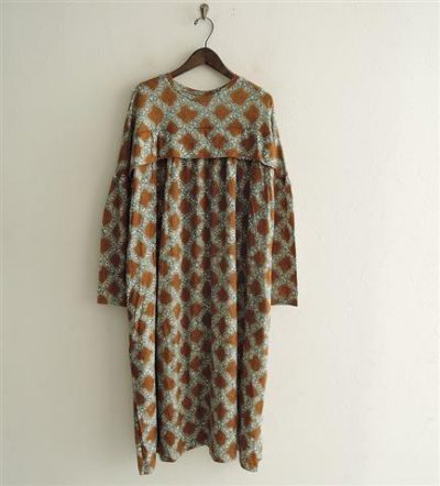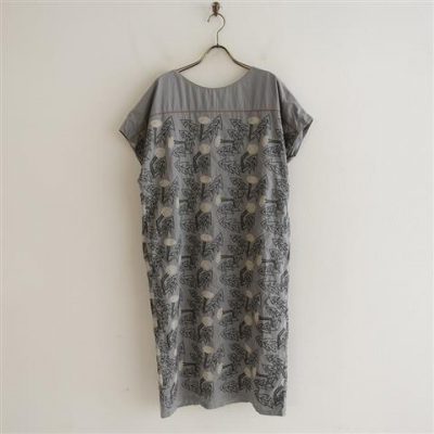 ミナペルホネンランドリー mina perhonen laundry friendプリントリネンスモックドレス 40(2-2001-265)【62A02】
