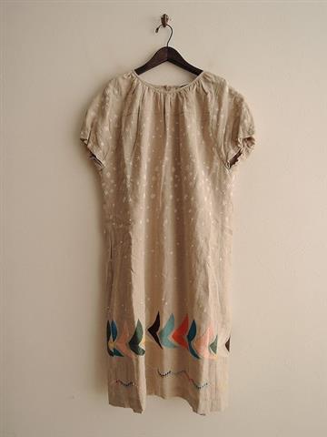 ミナペルホネン mina perhonen tambourine 刺繍リネンワンピース 38(1-1910-452)【41K91】