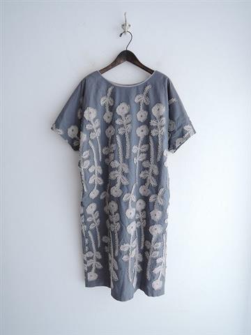 ミナペルホネンランドリー mina perhonen laundry flower diamond 刺繍ワンピース 38(25-1910-100)【80K91】