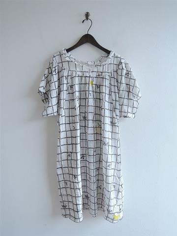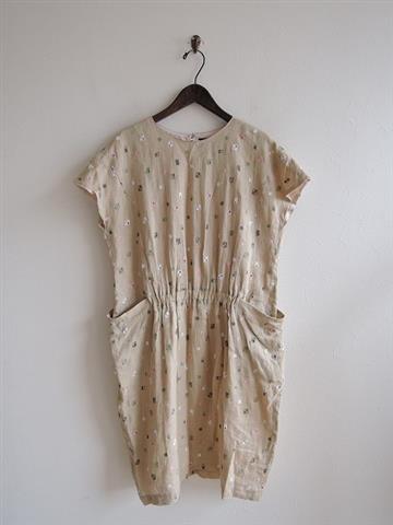 ミナペルホネンランドリー mina perhonen laundry friendプリント綿麻サックワンピース 38(2-1809-49)【21I81】