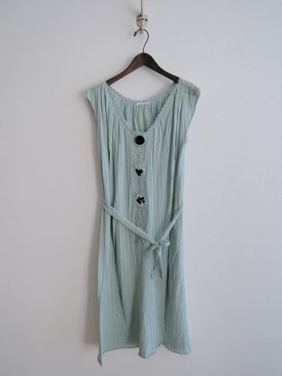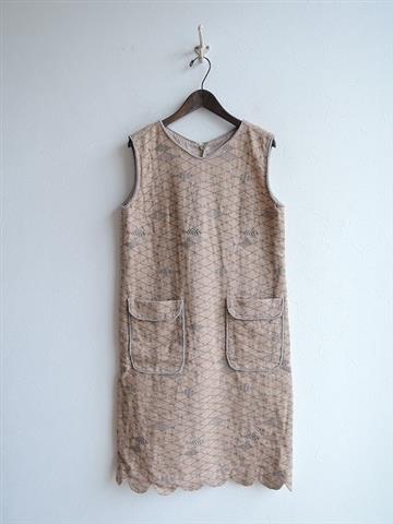 ミナペルホネン mina perhonen pacific リネン刺繍Vネックノースリーブドレスワンピース 38(33-1806-431)【32F81】