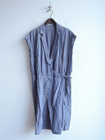 ミナペルホネン mina perhonen shimmer 襟つきカシュクールリネンワンピース 38(11-1905-190)【22E91】