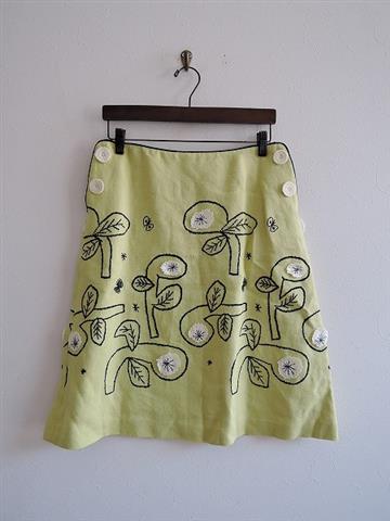 ミナペルホネン mina perhonen bow 刺繍リネンコットンスカート 38(sk1-1805-592)【90F81】