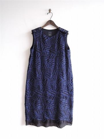 ミナペルホネン mina perhonen log肩ボタン刺繍ノースリドレス 38(2-1902-52)【11B91】
