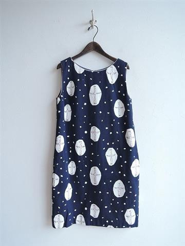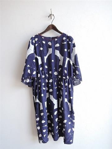 ミナペルホネン mina perhonen cross bird 総柄ワンピース 38(4-1809-10)【11I81】