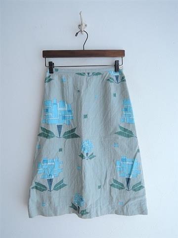 【美品】 ミナペルホネン mina perhonen tambourine リネン×チュール刺繍スカート 38(sk33-1809-84)【41I81】