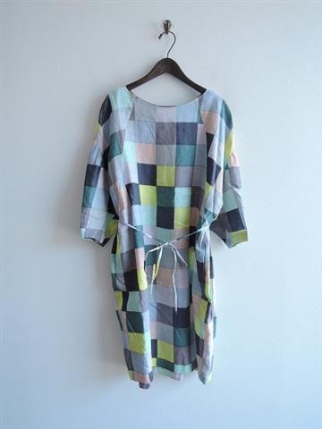 ミナペルホネン mina perhonen jelly チェック柄リネンドレスワンピース 38(33-1807-585)【82G81】