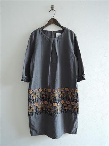 ミナペルホネンランドリー mina perhonen laundry path 刺繍入りコーデュロイワンピース 40(1-1803-113)【71C81】