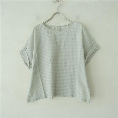 ミナペルホネン mina perhonen deep breathチェックコットンフレンチスリーブブラウス 38(2-2206-154)【82F22】