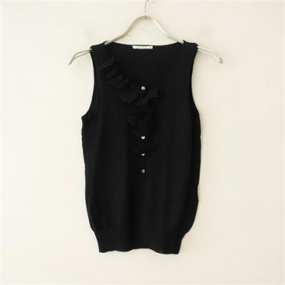 ミナペルホネン mina perhonen lily bell 飾り付きウールノースリーブニット -(27-2204-46)【42D22】