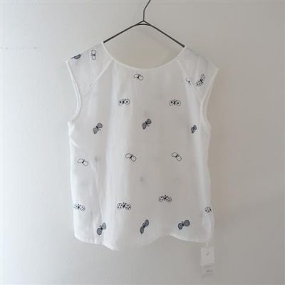 【2021/未使用/定価2.7万】 ミナペルホネン mina perhonen choucho コットン刺繍ノースリーブシャツ 38(33-2205-159)【62E22】