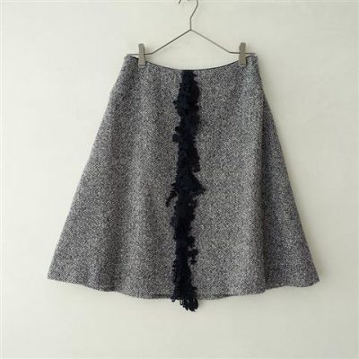 【美品】 ミナペルホネン mina perhonen forest paradeモチーフ使いヘリンボーンスカート 38(sk2-2101-307)【30B12】
