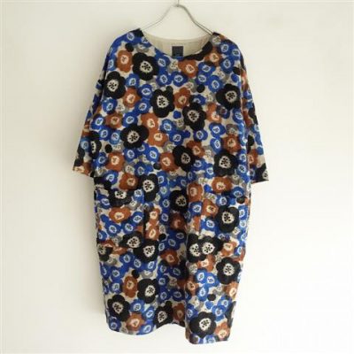 ミナペルホネン mina perhonen millefiori ウールガーゼプリントドレスワンピース 38(33-2011-91)【71K02】