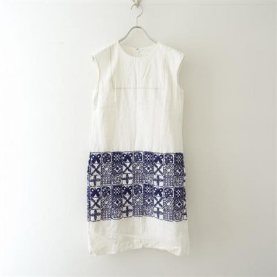ミナペルホネンランドリー mina perhonen laundry forest tile リネン刺繍ドレスワンピース 36(33-2008-154)