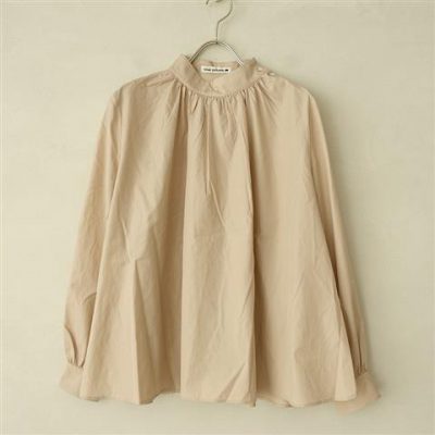 【美品】2020/ ミナペルホネン mina perhonen adagioコットンバンドカラーギャザーブラウス 38(2-2010-333)【92J02】