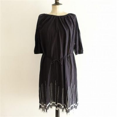 ミナペルホネンランドリー mina perhonen laundry waltzエンブロイダリーベルテッドワンピース 38(2-2011-57)【61K02】