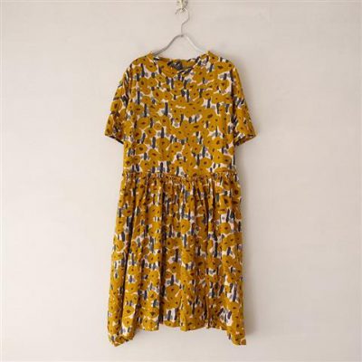 ミナペルホネン mina perhonen sonata ウールシルク混プリントドレスワンピース 36(33-2011-333)【42K02】
