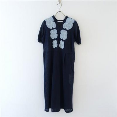 ミナペルホネン mina perhonen hope リネンニット刺繍Vネックワンピース 38(33-2005-615)【50F02】