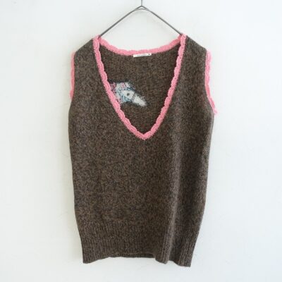 【美品/定価4.9万】ミナペルホネン mina perhonen kukka kakku クルーネックニットベスト 40 (33-2508-317)【90I52】