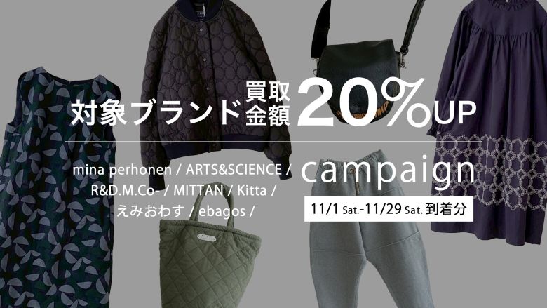 対象ブランドの査定金額が20%UPとなるキャンペーンを開催しております。