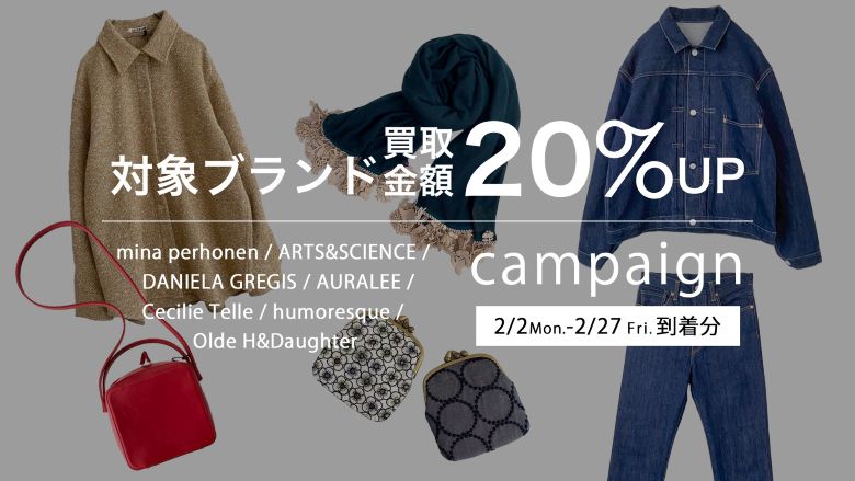 対象ブランドの査定金額が20%UPとなるキャンペーンを開催しております。